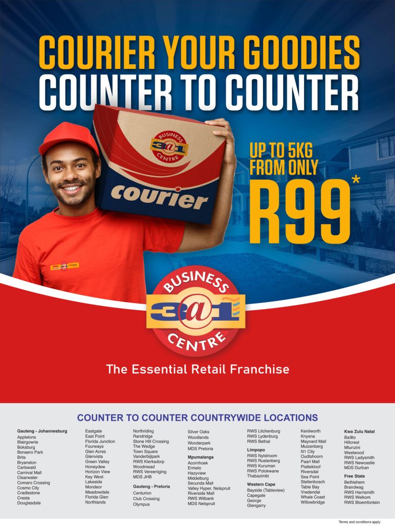 Business and home deliveries throughout South Africa – more details below